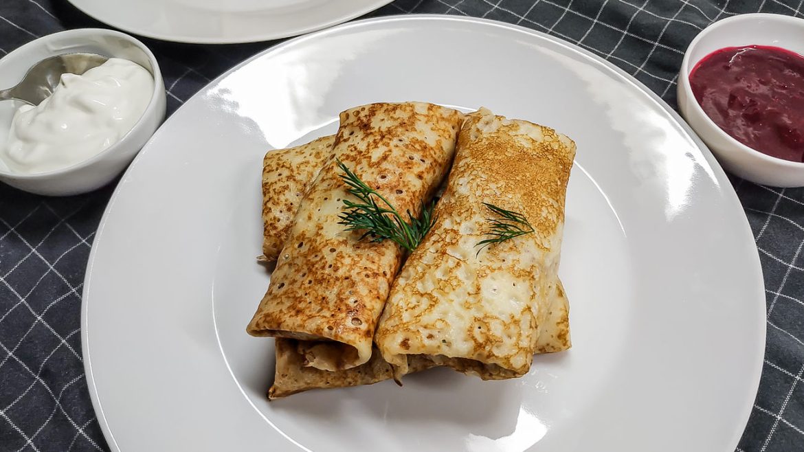 Сервируйте блюдо со сметаной или ягодным джемом, украсив веточками свежего укропа.
