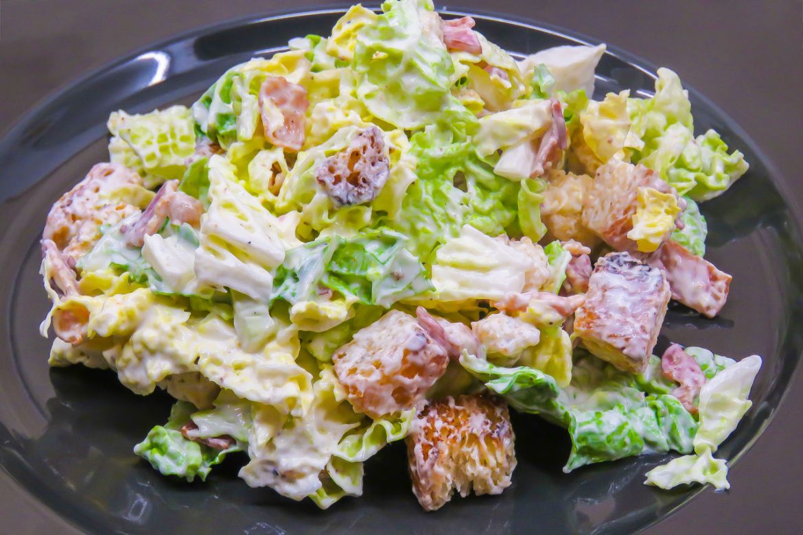Добавляем майонезную заправку и сразу подаём к столу: