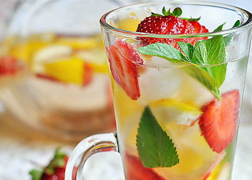 Обычно я готовлю традиционный лимонад с лимонами, апельсинами и мятой, но в сезон клубники предпочитаю использовать эти ягоды вместо апельсинов. Напиток получается с мягким, деликатным вкусом и отлисно освежает в жару.