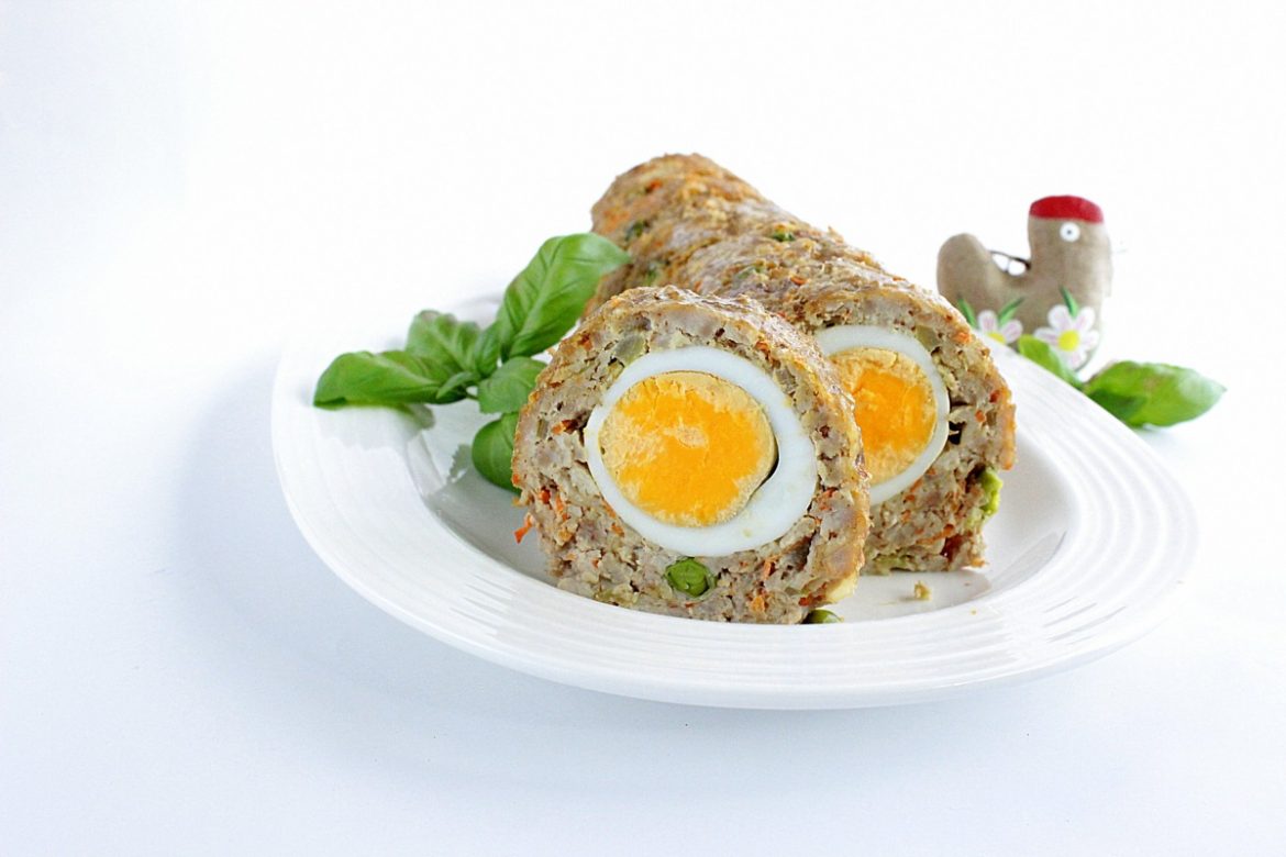 Соберите все компоненты для мясного рулета с яйцом внутри.