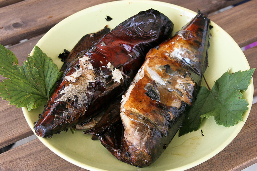 Готовая скумбрия имеет аппетитный вид. Перед употреблением снимите кожуру — она обладает горечью и содержит вредные вещества.