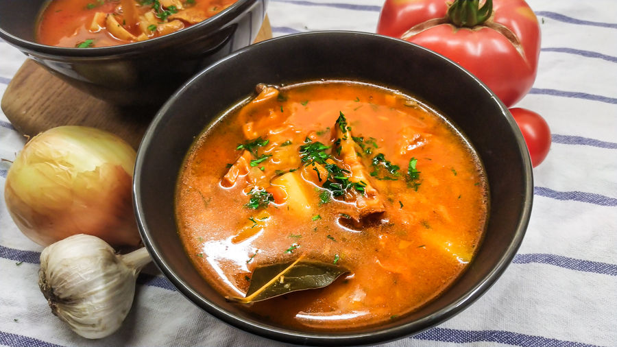 Перекладываем зажарку в подготовленный бульон, доводим до кипения и варим на умеренном огне ровно десять минут.