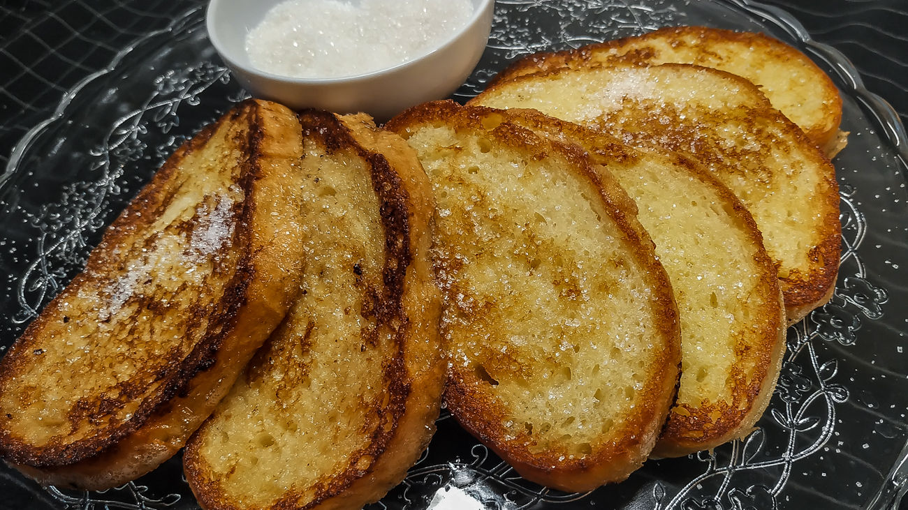 Жарим на разогретом сливочном масле примерно 90 секунд с каждой стороны при интенсивном нагреве.