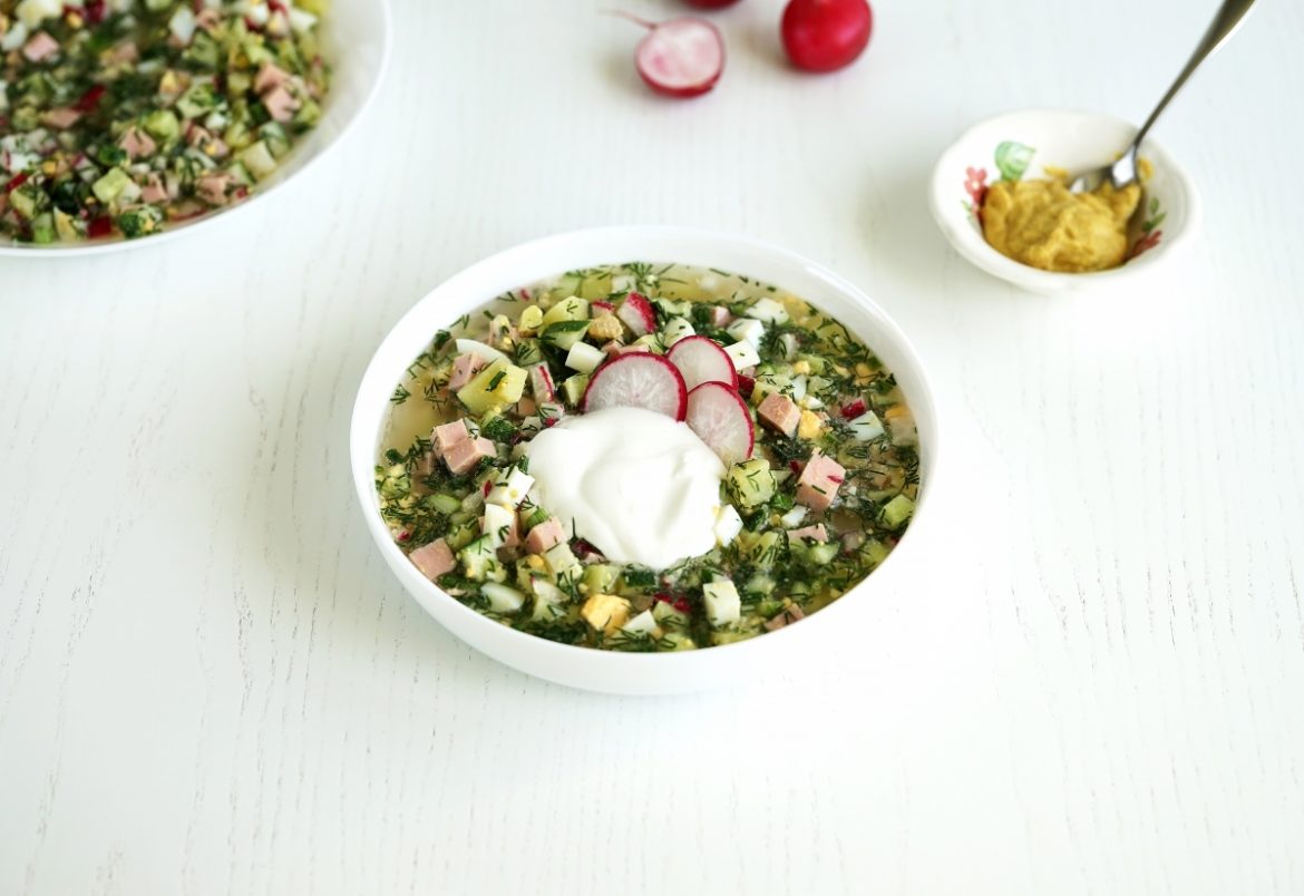 Этот этап критически важен: перетёртый лук придаёт блюду интенсивный аромат и летнюю свежесть, одновременно снижая остроту. Данный приём существенно улучшает вкусовой профиль окрошки.
