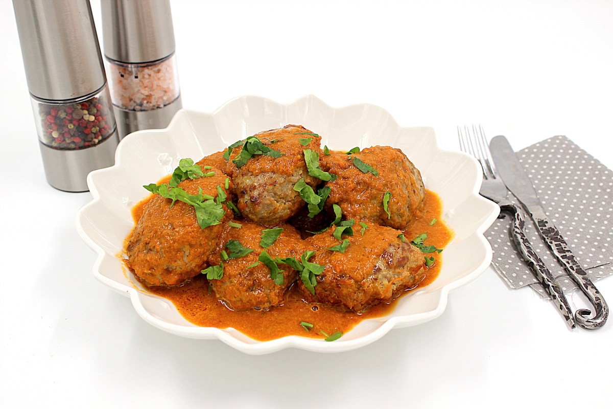 Блюдо готово к подаче. Для более гладкой текстуры соуса извлеките котлеты, а овощную смесь взбейте блендером.