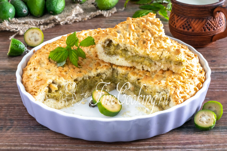 Традиционный тертый пирог для духовки — простой и аппетитный десерт для домашнего чаепития. В этом рецепте мы используем начинку из фейхоа, сахара и крахмала.