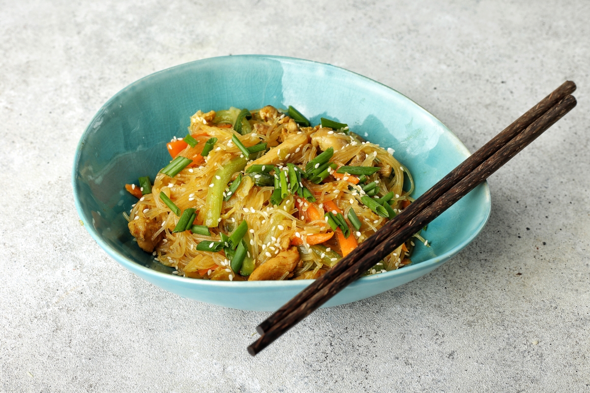 Фунчоза с курицей и овощами готова! Приятного аппетита!