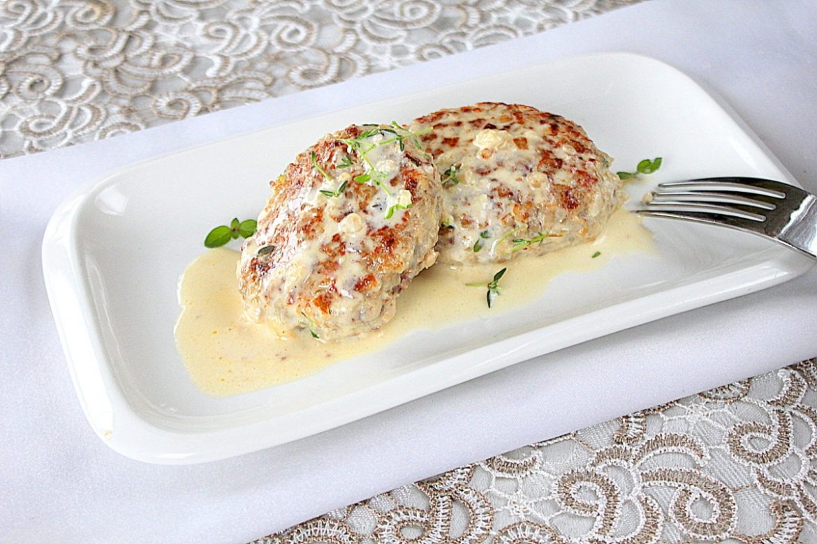 В качестве специй — душица (орегано) и тимьян. Свежую зелень можно заменить сушеной: потребуется около 1 ч.л. с небольшой горкой, разделенной на две порции для фарша и соуса.