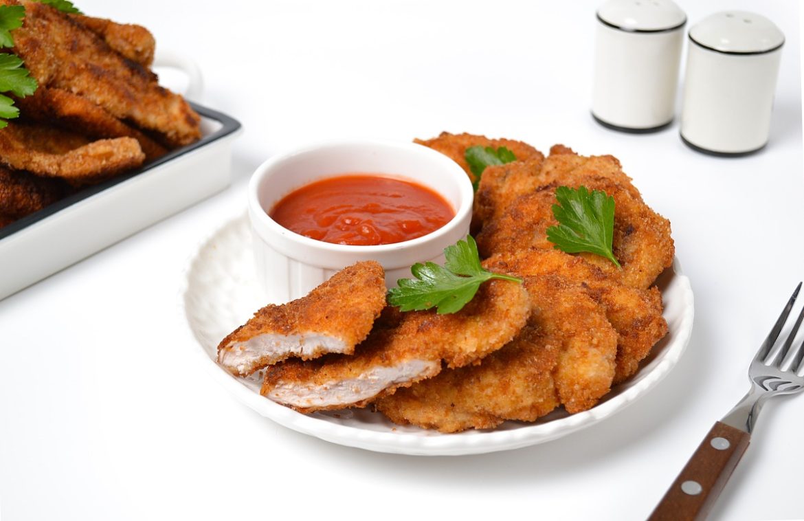 Подготовка продуктов: куриное филе следует предварительно разморозить в холодильнике, затем дать полежать при комнатной температуре. Убедитесь, что в мясе не осталось кристаллов льда — они помешают качественно отбить курицу. Грудку можно заменить филе бедра или мясом индейки.