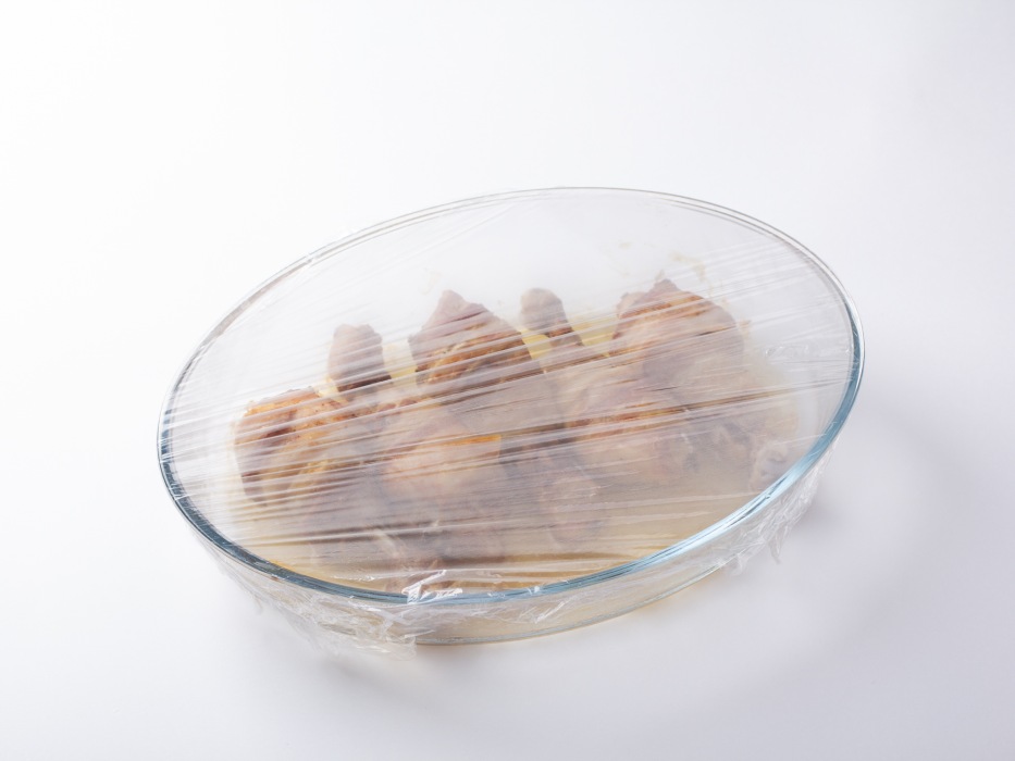 Накройте миску пищевой плёнкой и оставьте для маринования на 20 минут без охлаждения.