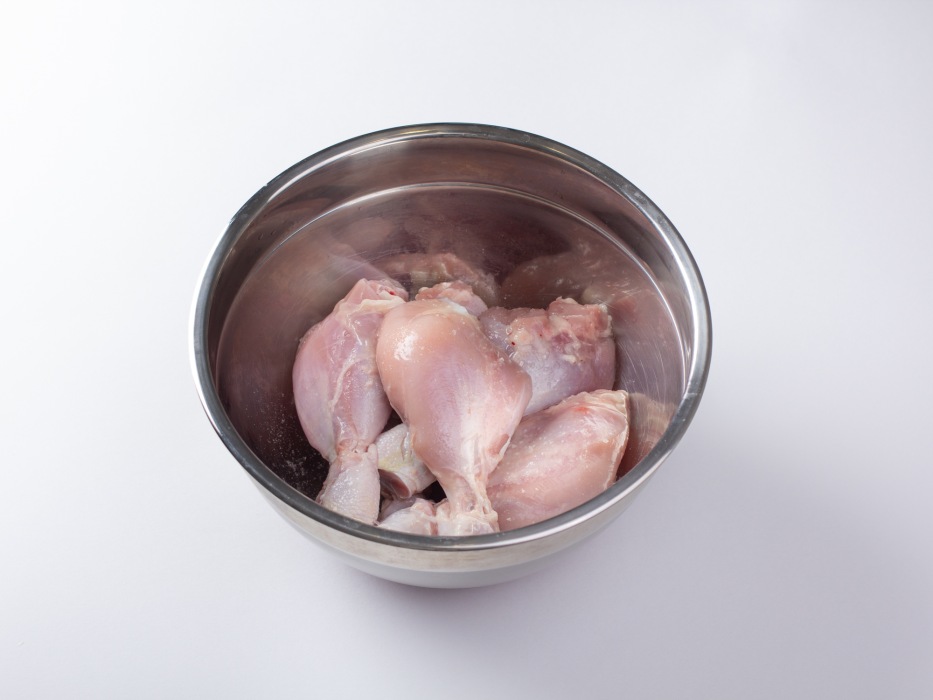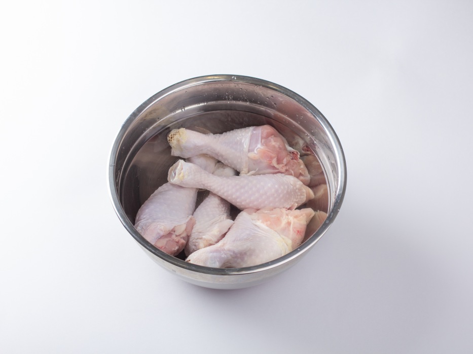 Промойте куриные голени холодной водой.