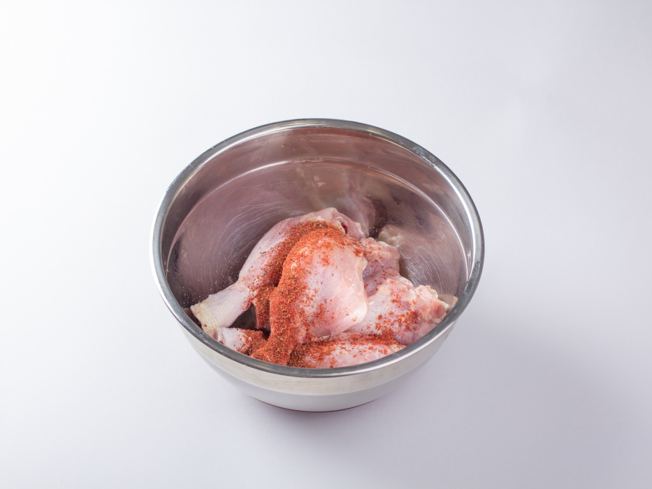 Переложите подготовленные голени в миску и тщательно посолите.
