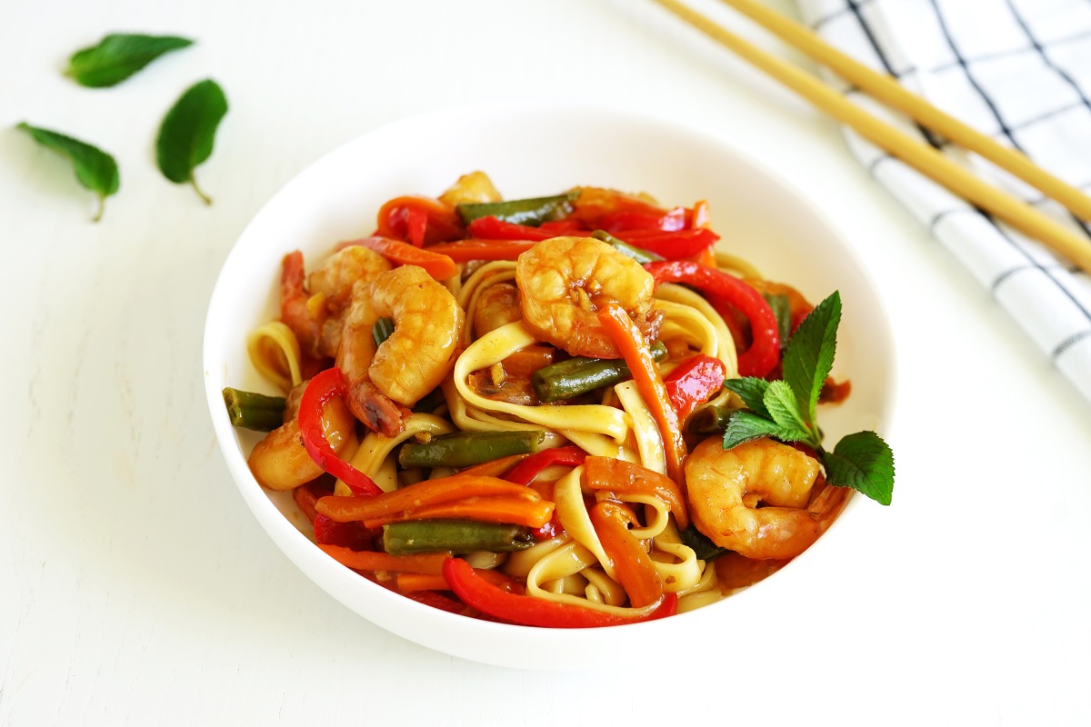 Пошаговый рецепт удона с креветками и овощами в фотографиях