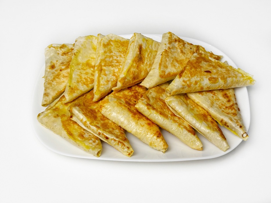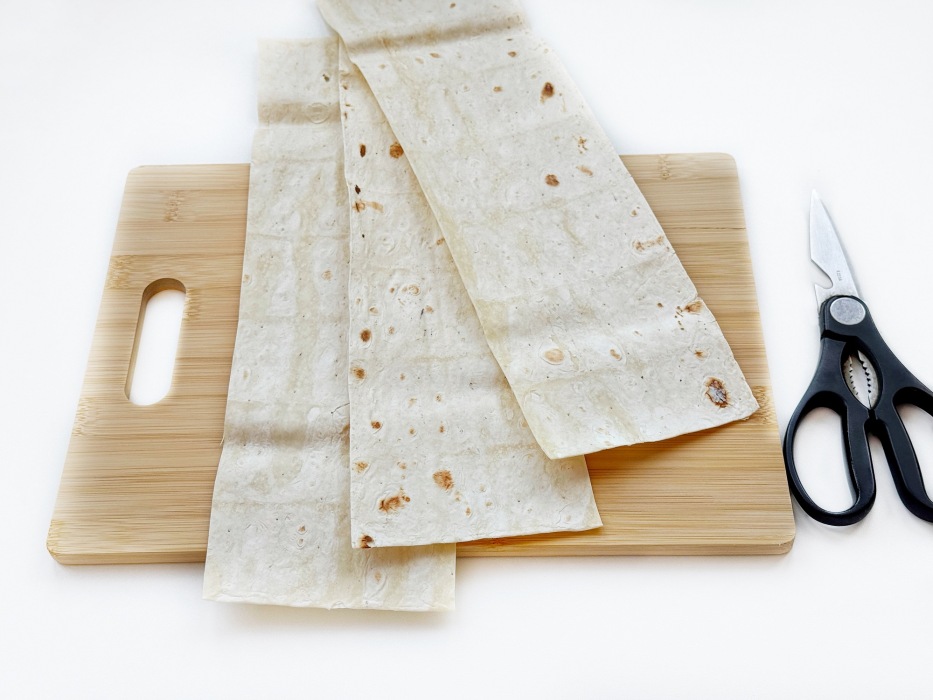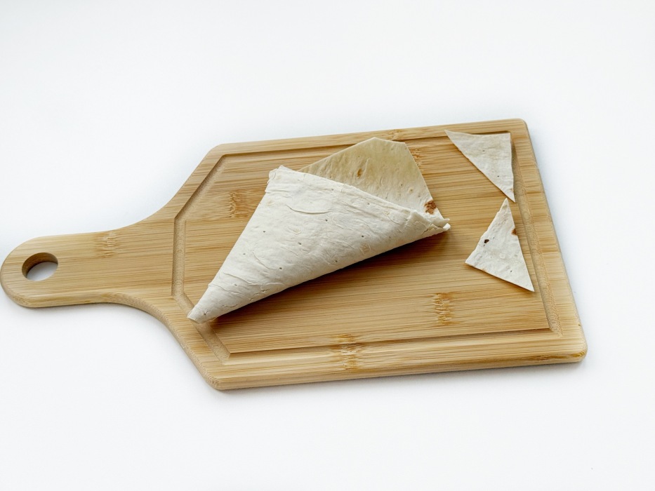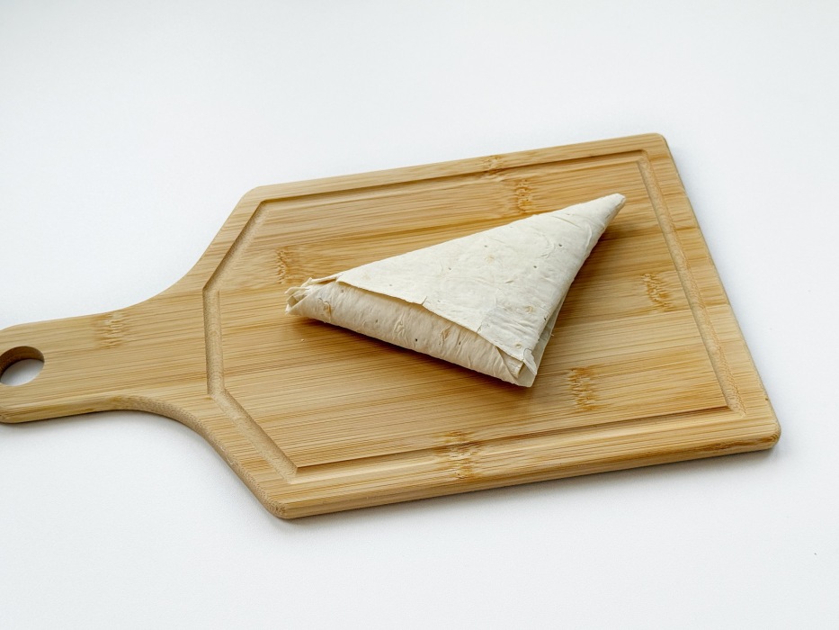 Нарежьте лаваш на одинаковые прямоугольники для аккуратных треугольников.