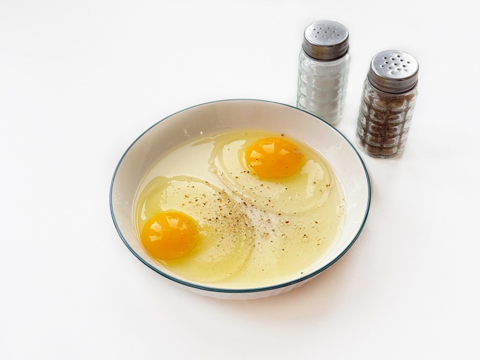 Взбейте яйца в миске с солью и перцем.
