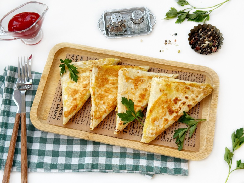 Соберите ингредиенты для лавашных треугольников с ветчиной и сыром. Выбирайте тонкий армянский лаваш — готовый нарезанный вариант упростит работу. Он гибкий, отлично сворачивается и сохраняет форму при обжарке. Для начинки предпочтительна формованная ветчина: она плотнее, легче тёрется и создаёт однородную массу.