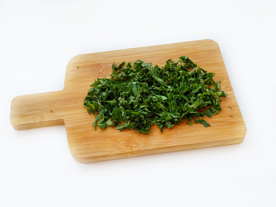 Порубите петрушку мелким кубиком.