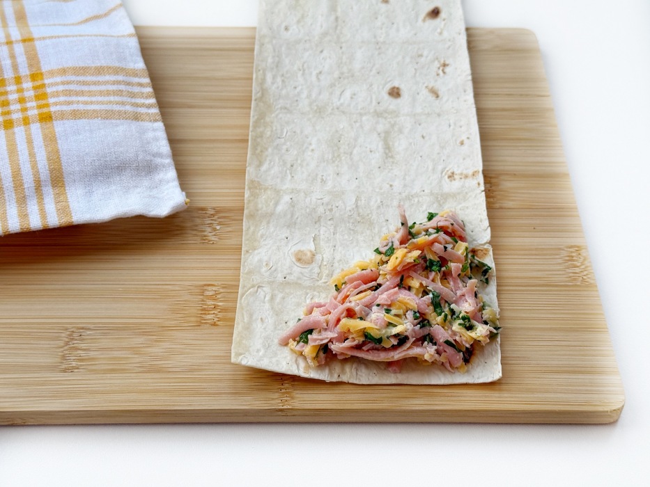Если есть только нарезка, измельчите её тонкой соломкой. Для сырной составляющей подойдут плавящиеся сорта — моцарелла, гауда или аналоги. Свежая зелень (петрушка, укроп, лук) освежит вкус. По желанию добавьте вяленые или свежие помидоры. Учтите: обмакивание в яйце делает лаваш мягким. Для хрустящей корочки этот этап можно исключить. Подготовьте зелень — вымойте и просушите. Очистите чеснок.