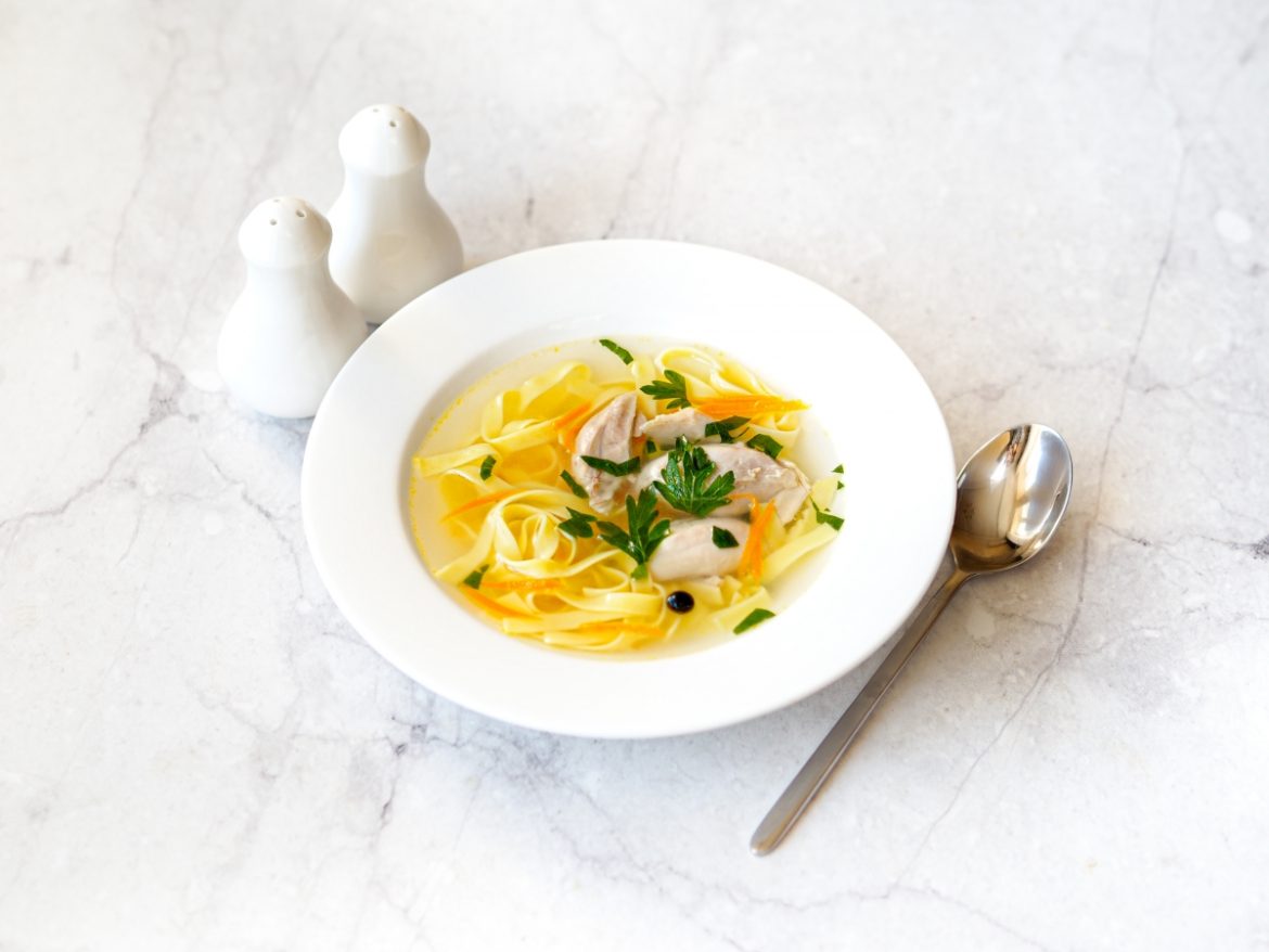 Оптимальный выбор лапши — средне-толстая яичная, которая немного разбухает при варке. Проверяйте срок годности: продукт сохраняет качество до полугода. Свежесть напрямую влияет на вкус блюда. Ищите маркировку «ручная работа» в хлебных отделах или супермаркетах.