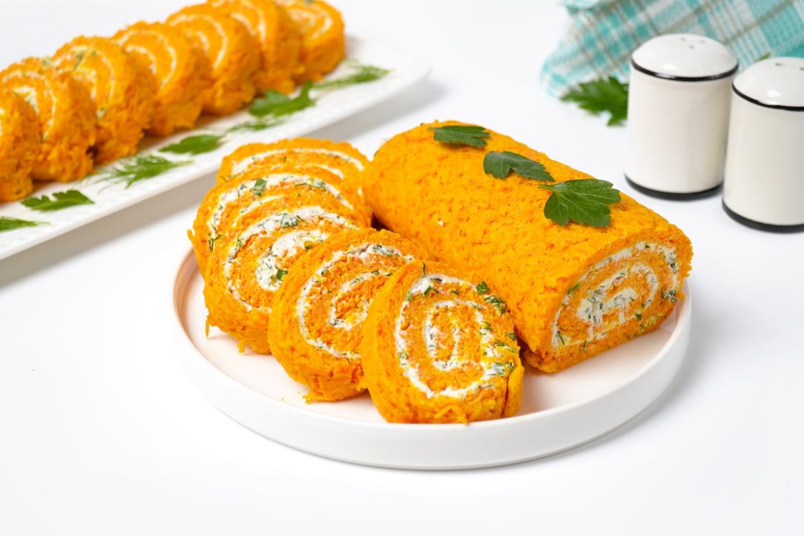 Соберите компоненты: сливочный сыр должен быть комнатной температуры, морковь очистите перед взвешиванием. Начинку можно готовить из любых мягких сырных продуктов: рикотты, маскарпоне или других. Учтите, что маскарпоне имеет более густую текстуру, что усложняет намазывание.