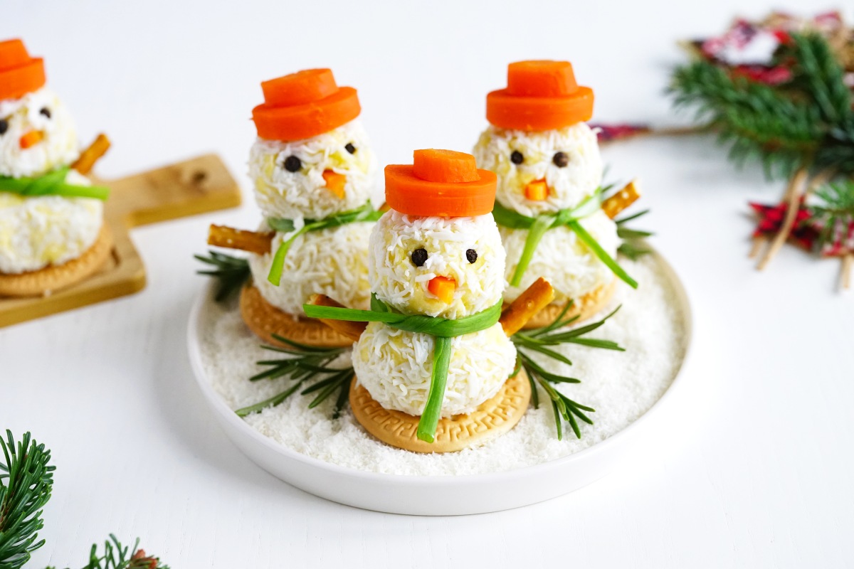 Пошаговый рецепт закуски «Снеговики» для новогоднего меню