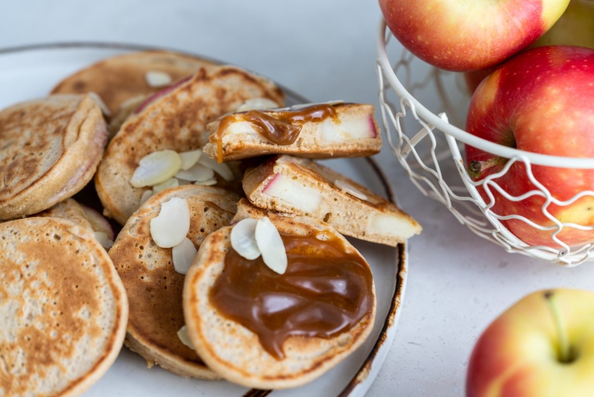 Выложите готовые оладьи на блюдо. Классический вариант – присыпать корицей. Альтернативные топпинги: мёд, карамель, сметана. Эти нежные оладьи идеальны для завтрака или перекуса в любое время дня.