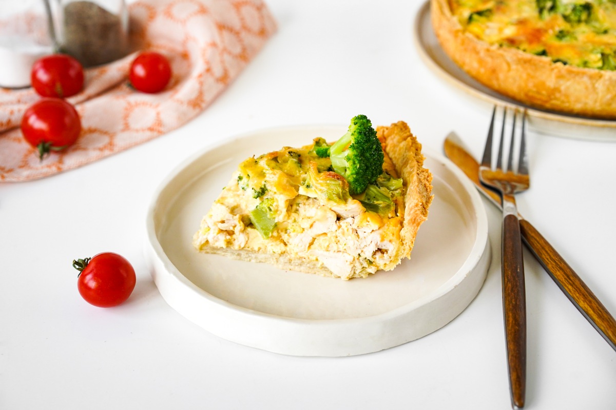 Готовый пирог извлеките из формы, нарежьте. Хрустящая основа, сочная курица, нежная брокколи и тягучий сыр создают гармоничный вкус. Приятной трапезы!