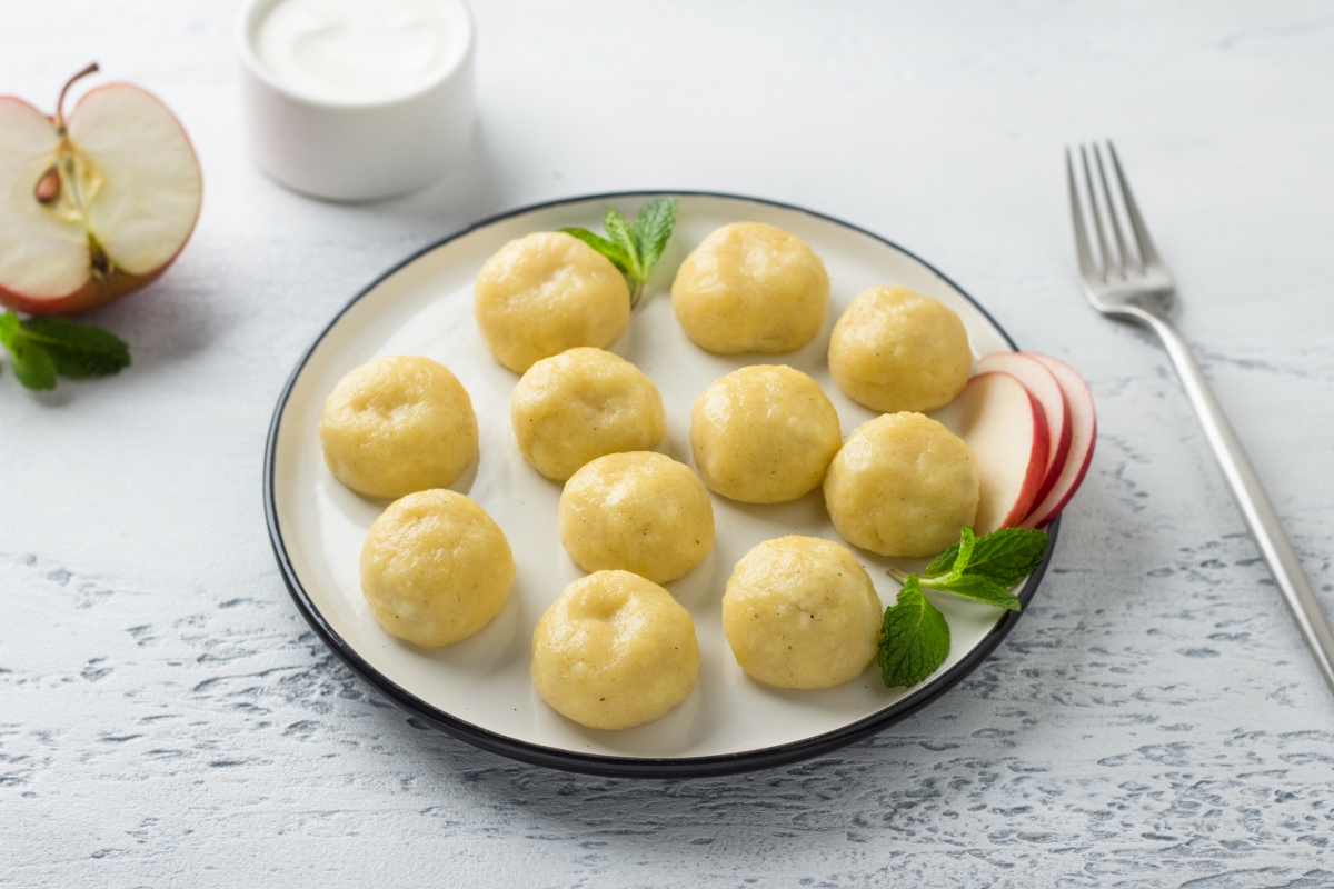 Яблоко можно заменить грушей, сушёными фруктами или ягодами (малиной, черешней без косточек, смородиной и др.), включая замороженные — их кладут без предварительного размораживания. При отсутствии фруктов можно приготовить вареники без начинки.