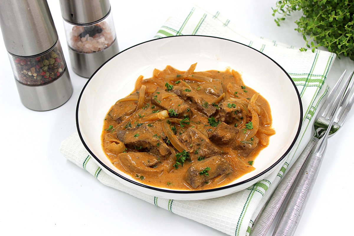 Бефстроганов из печени готов. Простое и быстрое блюдо. Приятного аппетита!