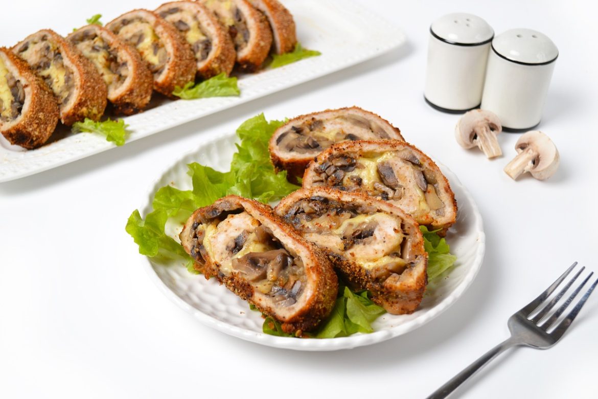Подавайте рулет с грибами и сыром горячим или тёплым, нарезанным ломтями. Приятного аппетита!