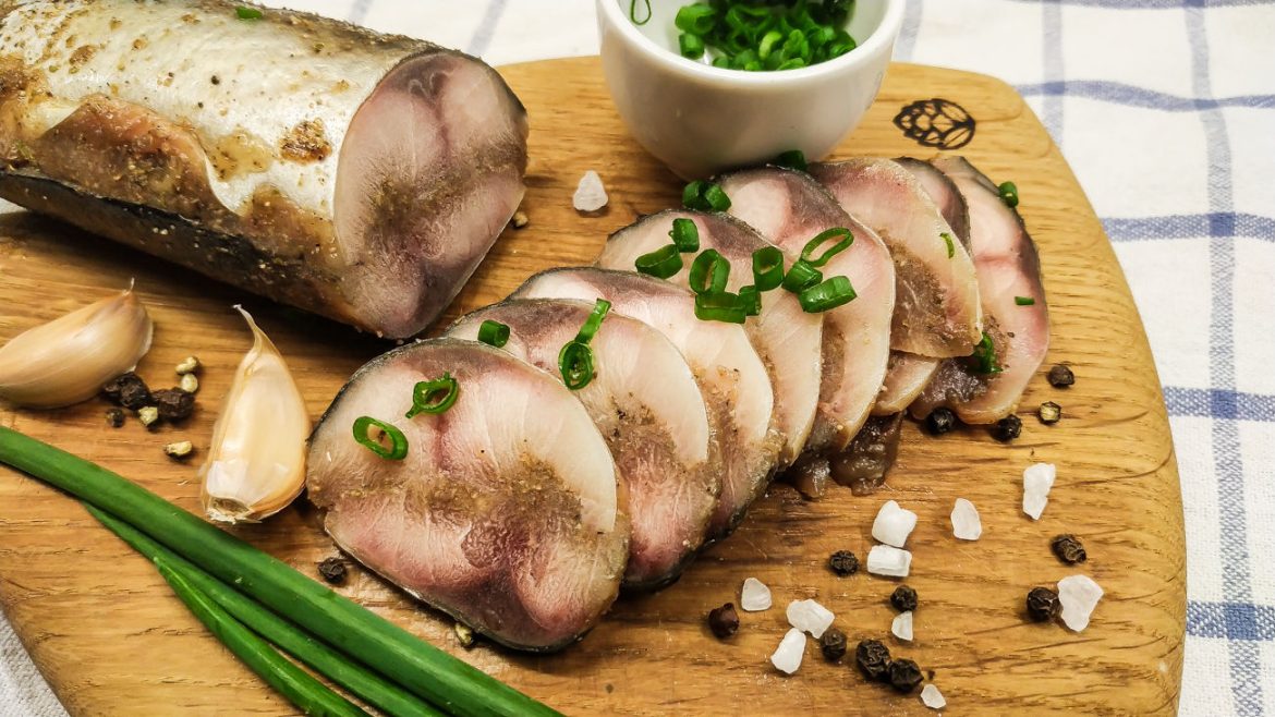 Перед подачей частично размораживаем и нарезаем тонкими ломтиками.