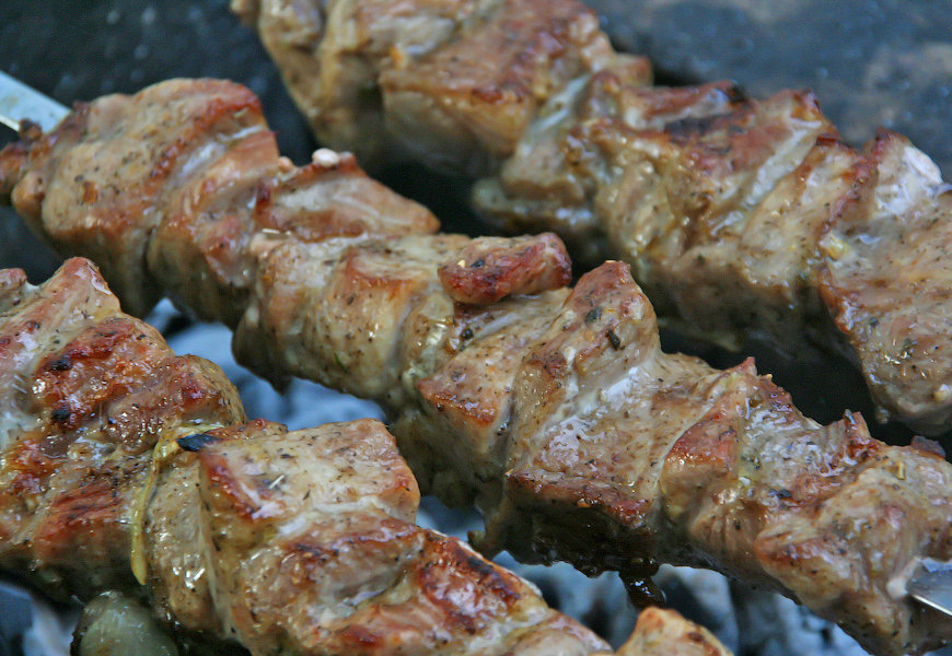 Предпочитаем шашлык средней прожарки, так называемый «с кровью» — хотя, разумеется, это прозрачный мясной сок, а не кровь: