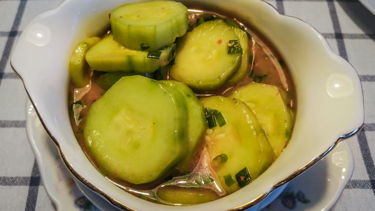 С огурцов удаляем кожицу, нарезаем их кружочками толщиной 7-10 мм. Репчатый лук мелко шинкуем.