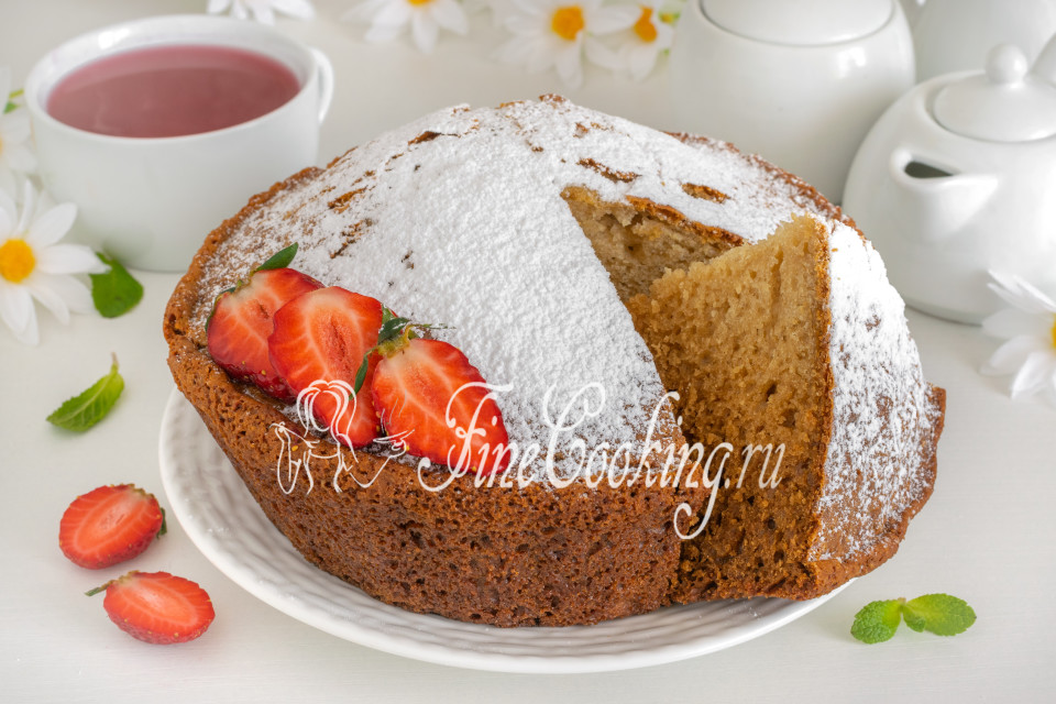 При желании украсьте сахарной пудрой или ягодами. Я добавила клубнику — красивую, но ещё не сезонную. Спасибо Анечке за заказ! Готовьте с удовольствием и приятного аппетита!