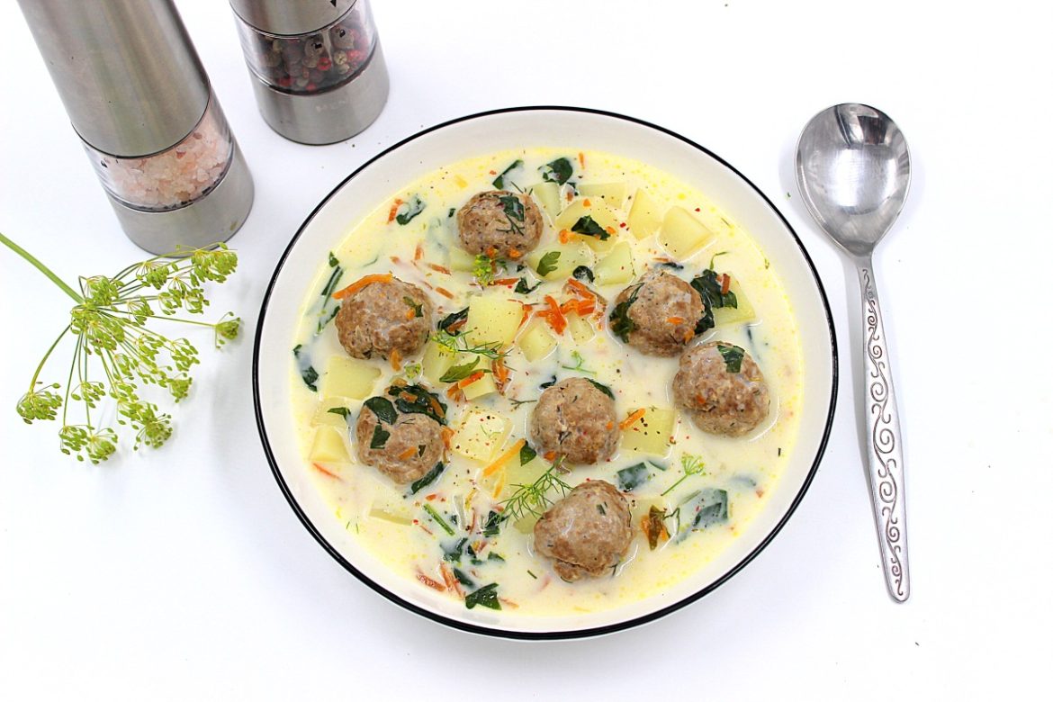 Подготовьте все компоненты для супа с сыром и мясными шариками.