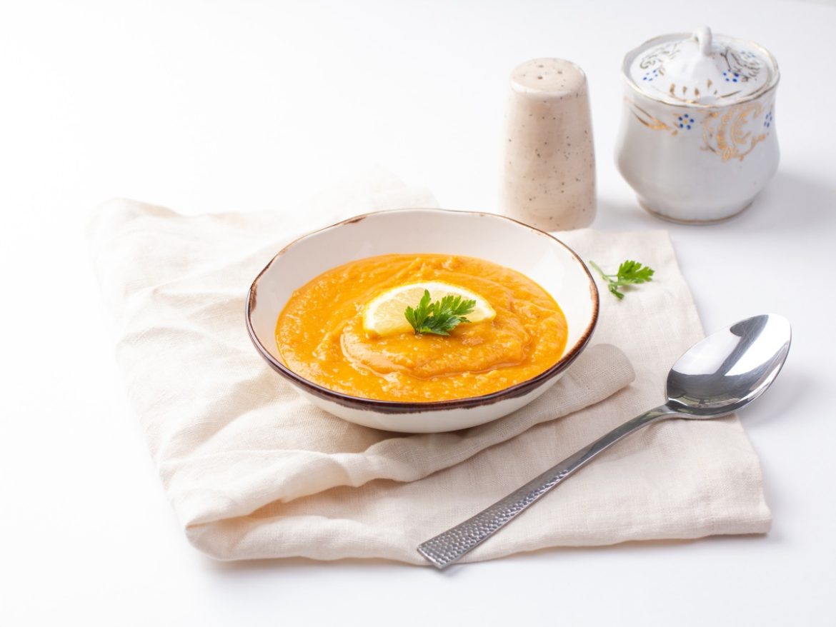 Подготовьте все компоненты для турецкого супа-пюре из чечевицы. Очистите лук, морковь и чеснок. При отсутствии томатной пасты подойдут томатный соус или сок. Чеснок, соль и перец регулируйте по вкусу. Воду допустимо заменить овощным бульоном.