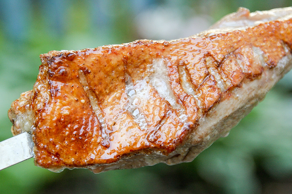 Готовим до полной прожарки без переворачивания шампуров. Это обеспечит равномерное пропекание мяса и хрустящую шкурку.