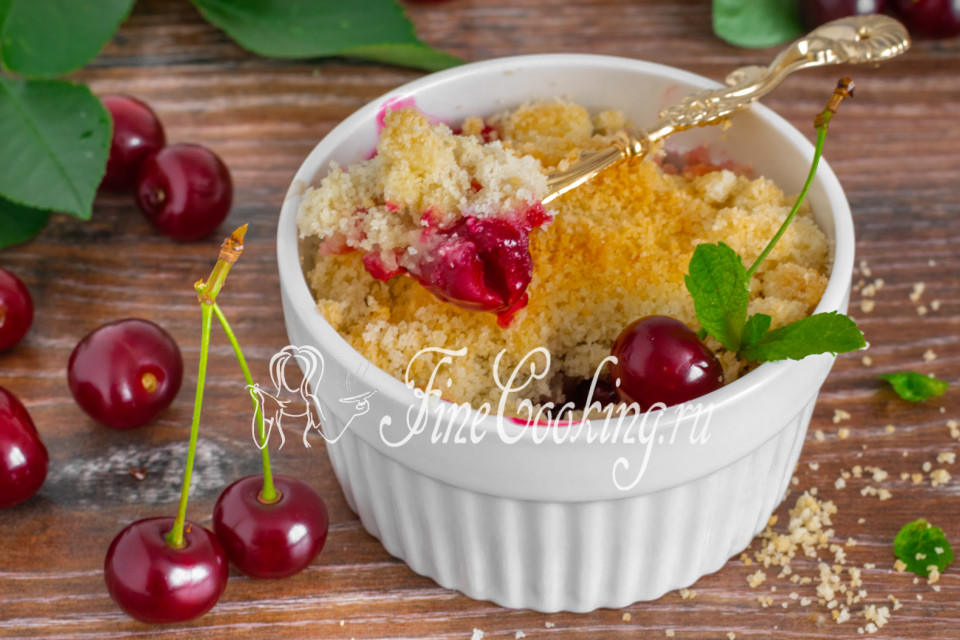 Коротко говоря, крамбл — незамысловатый, но восхитительный десерт. Его основа — два слоя: сочная фруктовая или ягодная прослойка и хрустящая крошка из песочного теста (штрейзель). В этой статье я предлагаю проверенный рецепт вишнёвого крамбла — одного из самых удачных вариантов домашней выпечки.