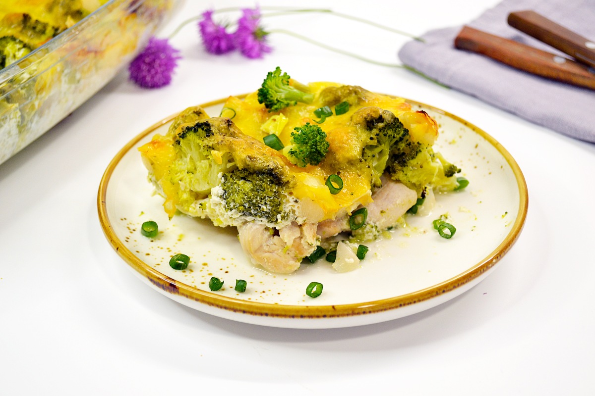 Подавайте диетическую курицу с брокколи горячей. Блюдо сохраняет форму даже в нагретом виде.
