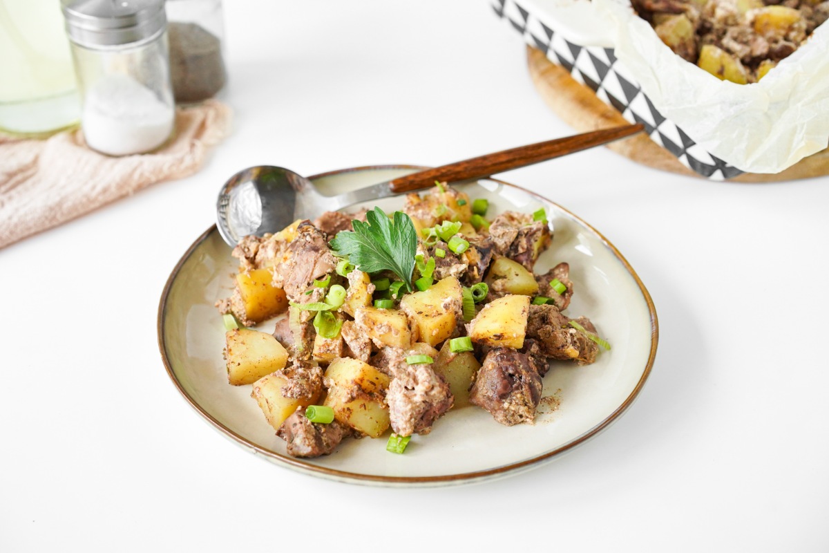 Запечённая печень сохраняет нежность, картофель пропитывается соком и соусом, приобретая насыщенный вкус. Сытное блюдо идеально для семейной трапезы.