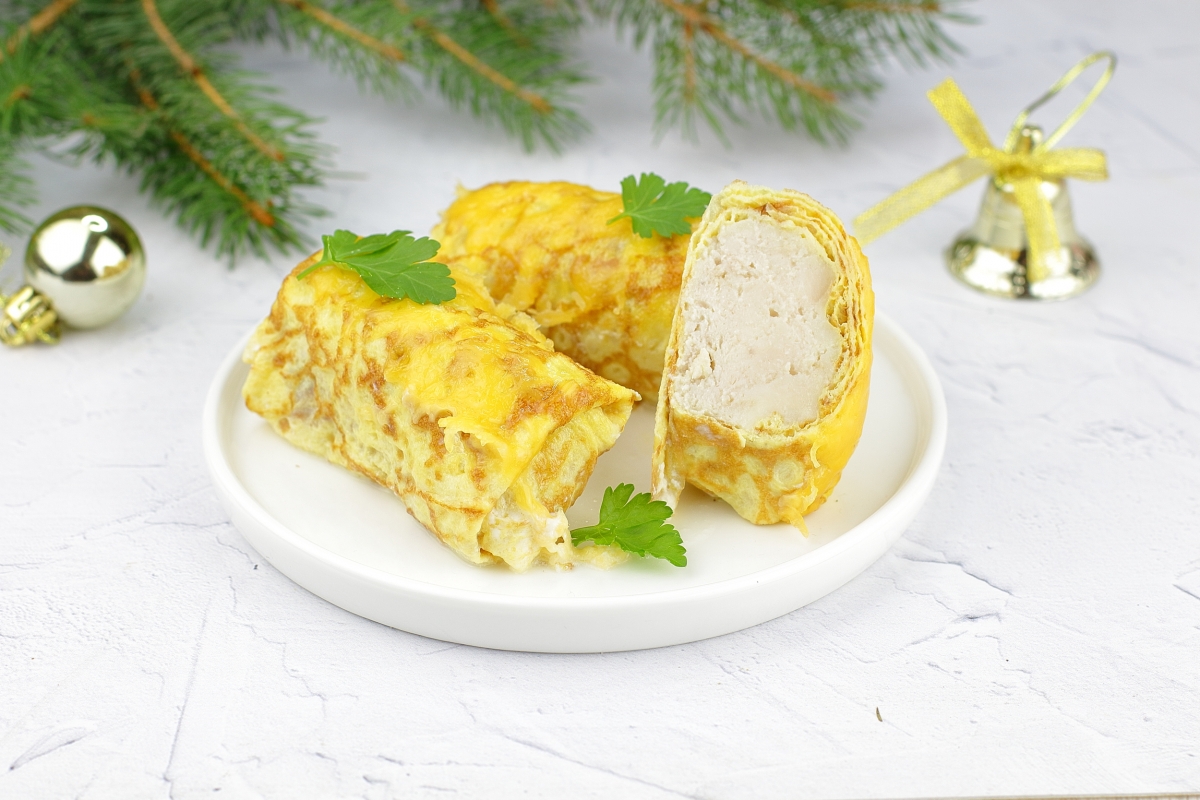 Яичные рулетики с мясной начинкой готовы к подаче.